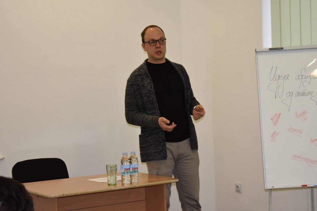 Predavanje je održao Ivan Vučković, filozof (PhM), saradnik brojnih stranih i domaćih časopisa za filozofiju i književnost i profesor filozofije u par srednjih škola u Boru.