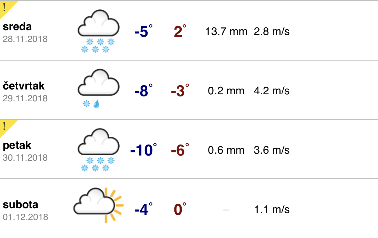Na snazi žuti meteo alarm, temperature u minusu sa stalnim padavinama