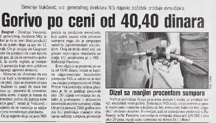 „Ovaj ekološki dizel koji odgovara najnovijem standardu zemalja EU proizveden je u NIS Rafineriji Pančevo. Evro dizel će se prodavati po ceni od 40,40 dinara i može se kupiti na najprometnijim benzinskim pumpama NIS, a uskoro će se naći i na ostalim pumpama širom Srbije“, pisao je naš list.