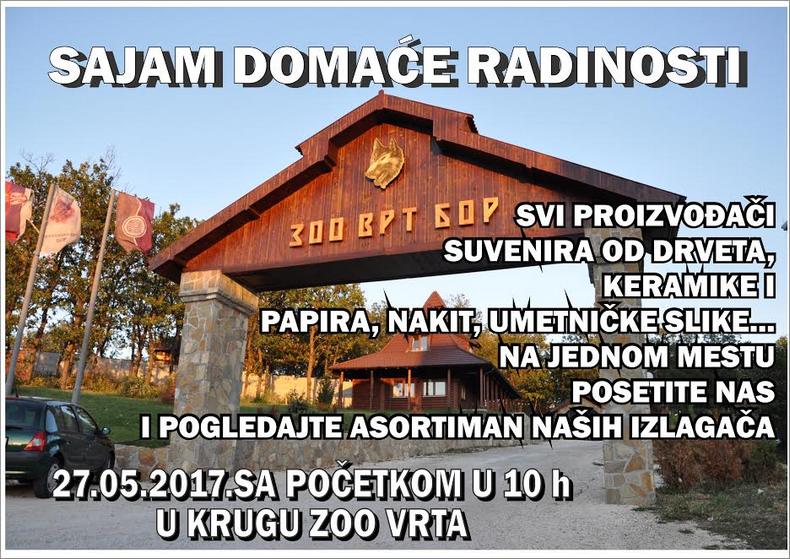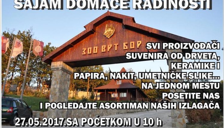 JP“Zoološki vrt“ Bor, u subotu 27. maja. 2017. godine, organizuje po prvi put Sajam domaće radinosti.