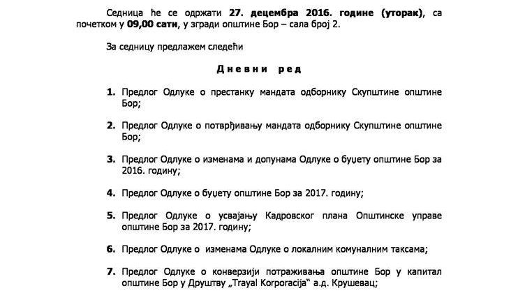 Dnevni red 23. sednice SO Bor – strana 2