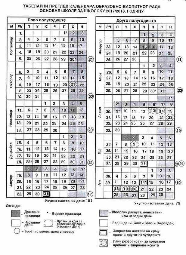 Školskim kalendarom je planirano da učenici imaju zimski raspust iz dva dela. Prvi deo za novogodišnje i božićne praznike i drugi deo nakon završetka prvog polugodišta.
