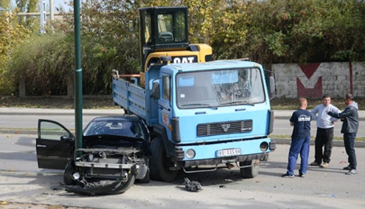Sudar se dogodio kada je crni megan naleteo na kamion marke TAM koji je prevozio rovokopač.