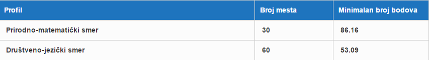- Prirodno-matematički smer (4 godine)
