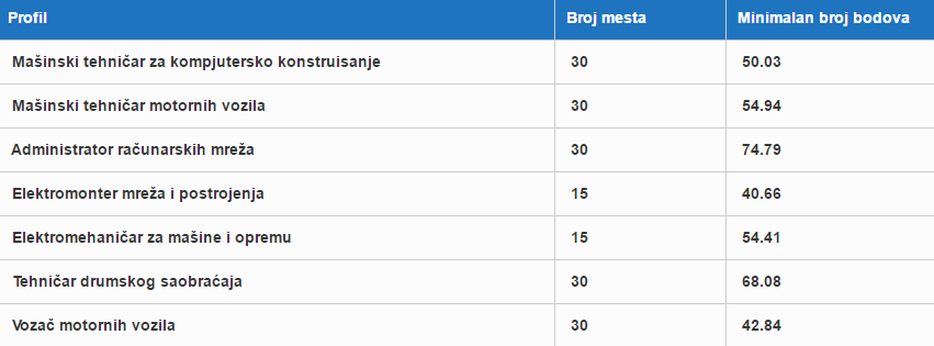 - Mašinski tehničar motornih vozila (4 godine)