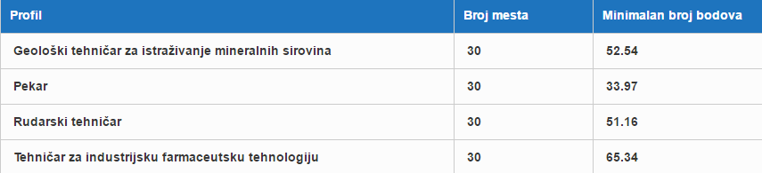 - Geološki tehničar za istraživanje mineralnih sirovina (4 godine)