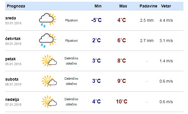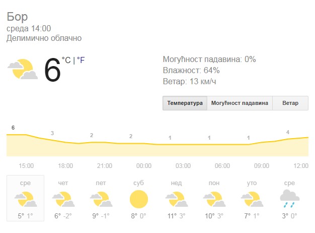 Vreme u Boru narednih dana